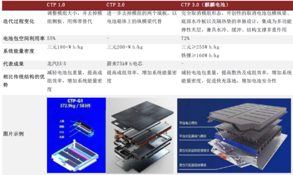 据中金公司分析,目前来看,动力电池向无模组、集成化方向发展将成为未来电池技术的趋势,是电芯品质提升后对能量密度追求的必然选择。电动车为提升续航里程,需在有限的底盘空间内提升体积利用率,尽可能多地放置动力电池以增加实际带电量。同时,CTP等无模组化技术也有助于电池降本并推动标准化与换电等新商业模式推广。