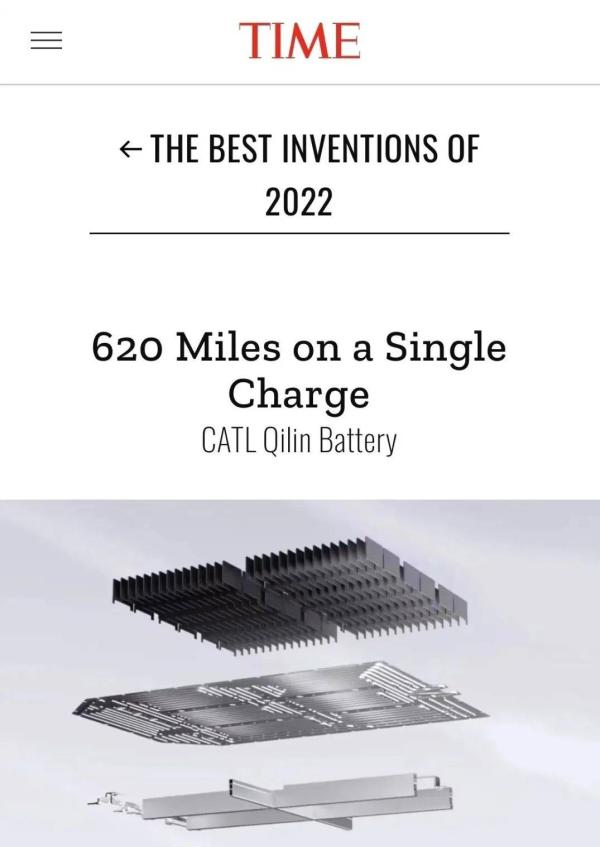 去年11月底,麒麟电池被美国《时代》周刊(TIME)评为2022年度最佳发明。