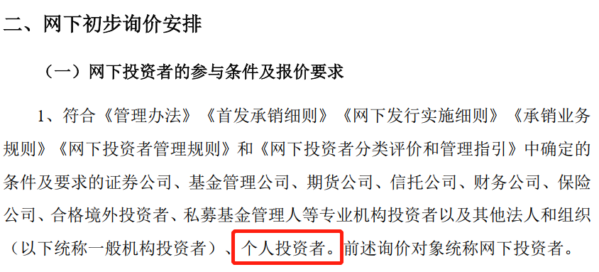 记者注意到,近日披露的几家主板注册制企业询价公告均表示,个人投资者可以继续参与网下打新。