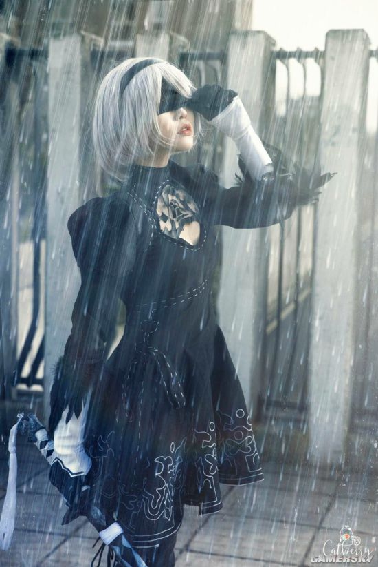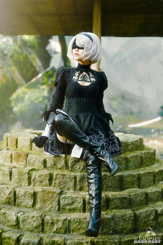 Asuka COS的2B在调com色、后期上都非常完美,再加上COSER的那一身看起来做工不错的服装,整个COS都看起来十分有气质,就是没有黑丝略遗憾,戴上眼罩的时候和游戏里的2B几乎一模一样。